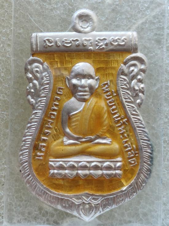 เหรียญเสมา จักรพรรดิ์ หลวงพ่อทวด รุ่นทอง 93 เนื้อเงินลงยาสีเหลือง หมายเลข ๒๐๒ หลวงพ่อทอง วัดสำเภาเชย จ.ปัตตานี |