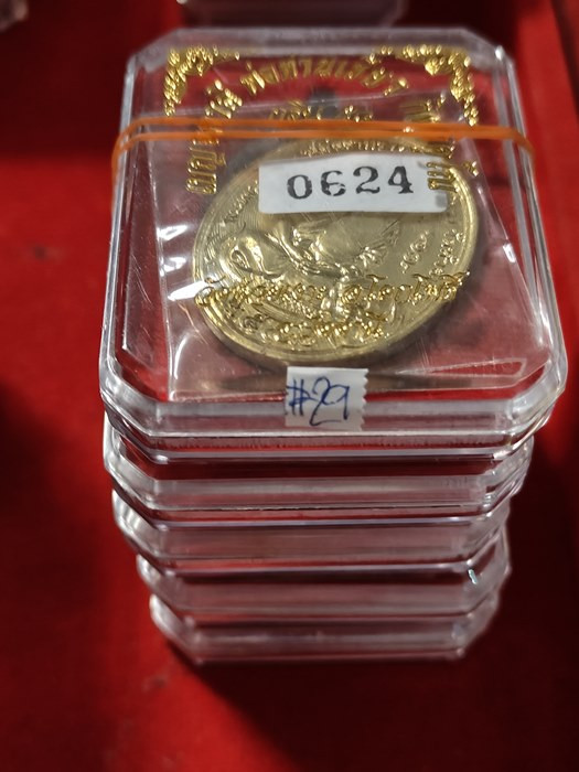 วัดใจ #17 ชุด5เหรียญ 5พิมพ์(มีกล่อง)(จอง700) เนื้อทองฝาบาตร รุ่น กฐิน 58 พ่อท่านเขียว วัดห้วยเงาะ อำเภอโคกโพธิ์ จังหวัดปัตตานี |