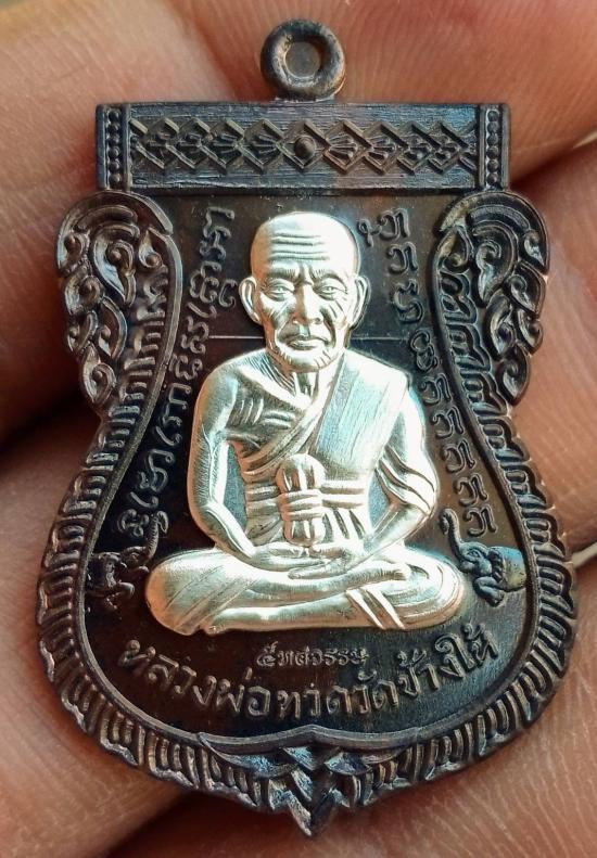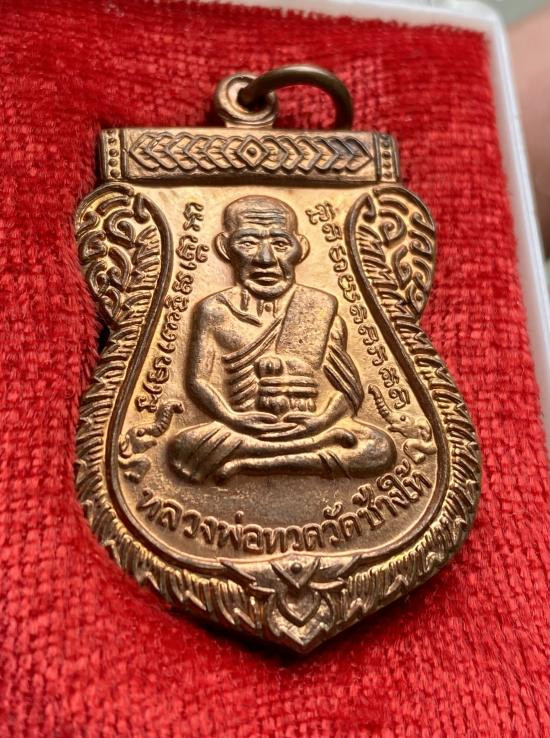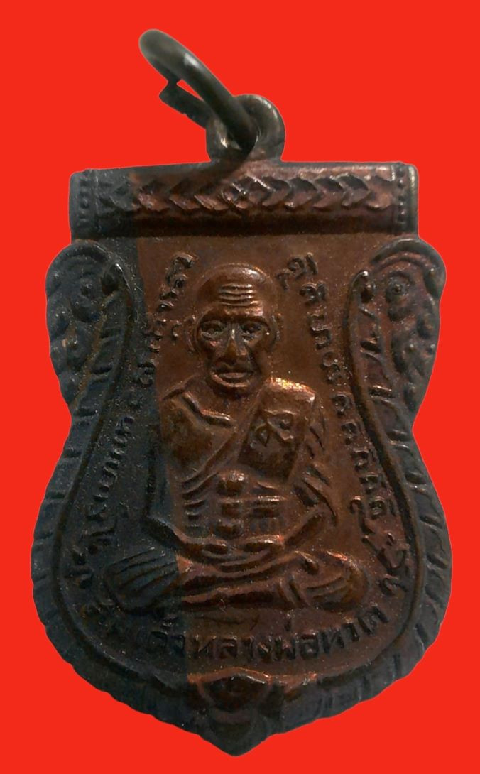เคาะเดียวแดง หลวงปู่ทวด พิมพ์หน้าเลื่อน รุ่น เจริญพรสรงน้ำ เลข10 เนื้อ บรอนชุบเงินโบราณ