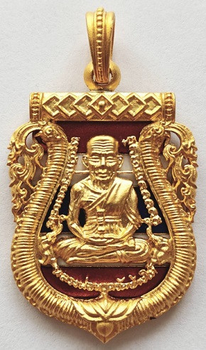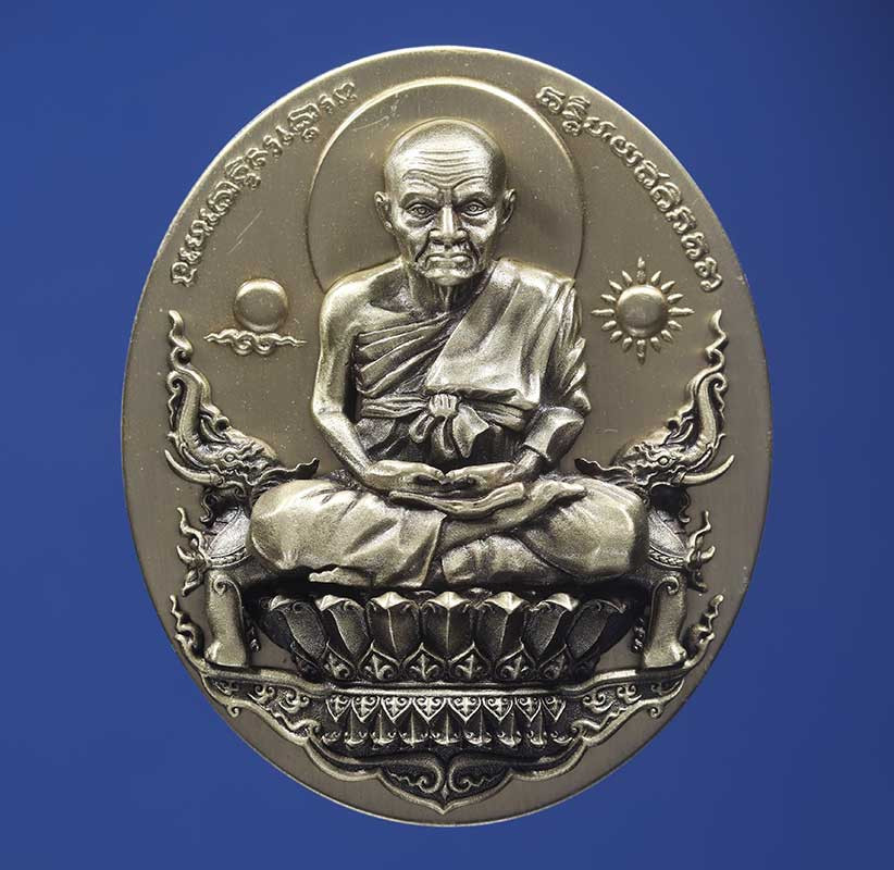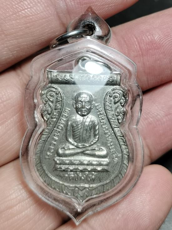 หลวงพ่อทวด พิมพ์รูปไข่นั่งพาน รุ่น๑ พุทธอุทยานมหาราช เนื้ออัลปาก้า หมายเลข* ๑๑๓๓(เลขสวย)
