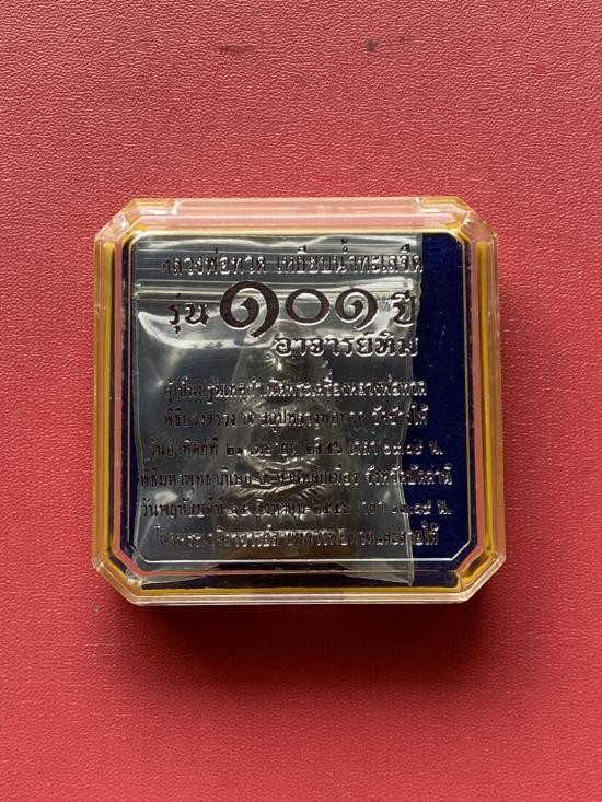 เคาะเดียวแดง เม็ดแตง หลวงปู่ทวด รุ่น101ปี อาจารย์ทิม เนื้อ เงินลงยาสีน้ำเงิน