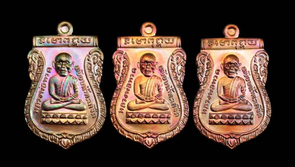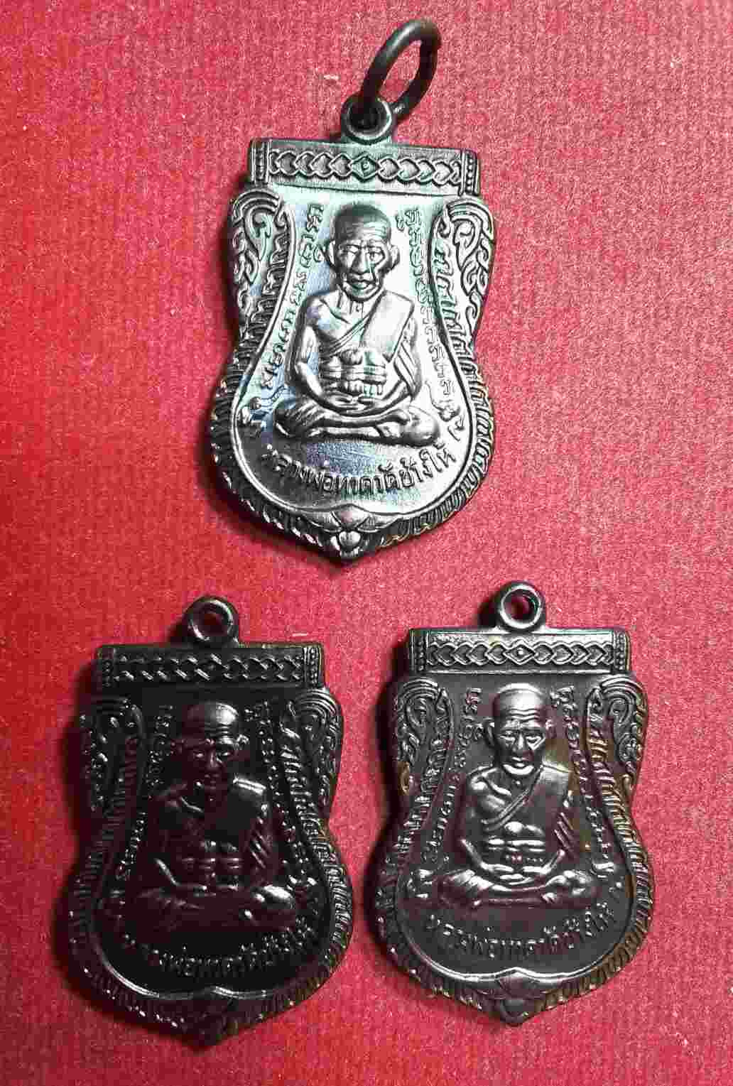 วัดใจ เหรียญเสมาเลื่อนหลวงปู่ทวด ปี 57 ววัดช้างให้ 3 เหรียญ เนื้อทองแดงรมดำ ตอกโค๊ต 57