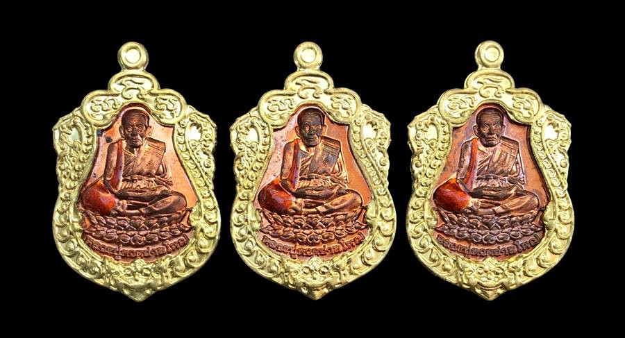 เคาะเดียวแดง เหรียญหล่อ หลวงปู่ทวดหลังหลวงปู่บุดดารุ่น เลื่อนสมณศักดิ์ (3องค์) เนื้อ ชนวน นำฤกษ์