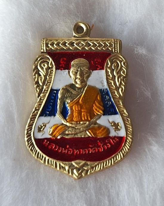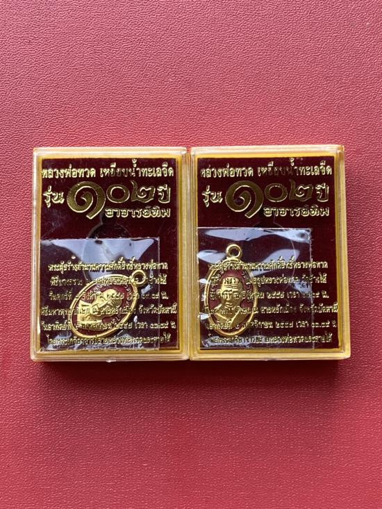 เคาะเดียวแดง เม็ดแตง 2องค์หลวงปู่ทวด รุ่น102ปีอาจารย์ทิม เนื้อชุบทองลงยาสีธงชาติ |