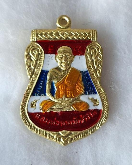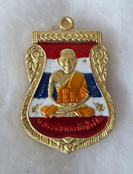 วัดใจ หลวงปู่ทวด หลวงปู่ศิลา เมตตาอธิษฐานจิต รุ่นเลื่อนสมณศักดิ์ เหนือดวง เนื้อทองทิพย์ ลงยาลายธงชาติ No.407 |