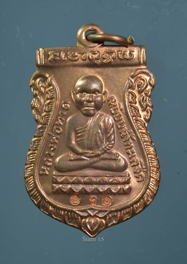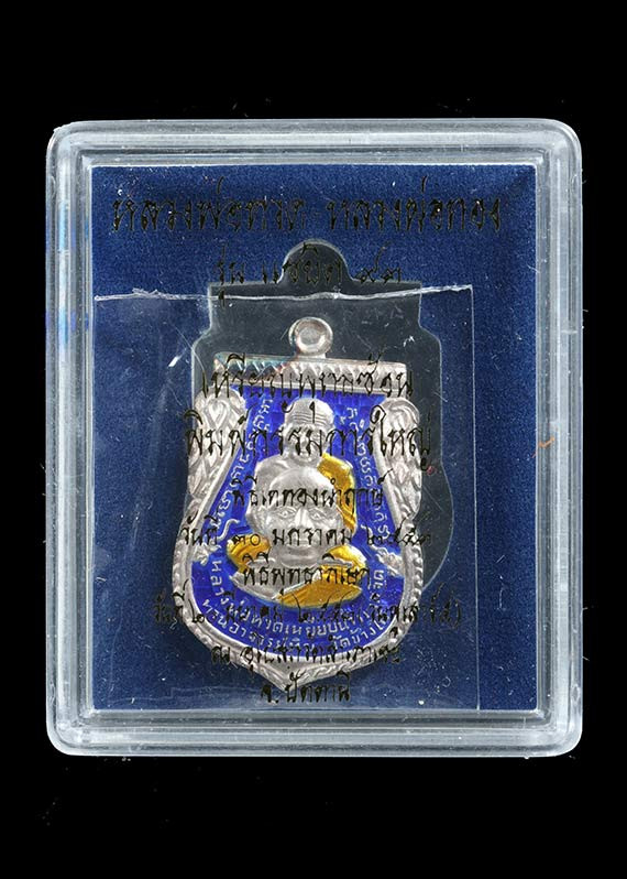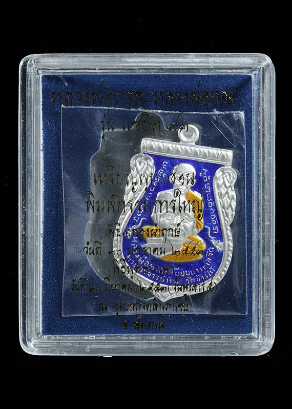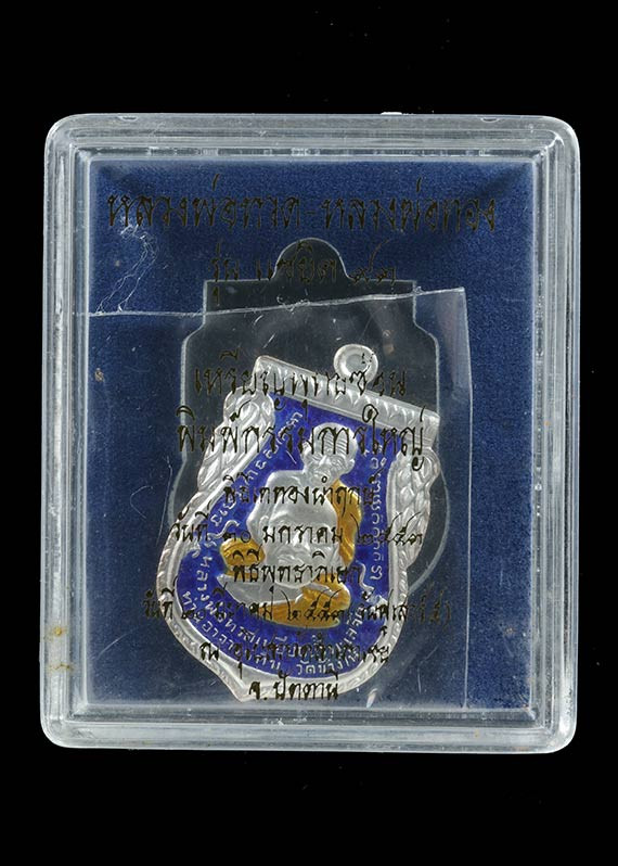 เหรียญหลวงพ่อทวดปลดหนี้ วัดสนธ์ จ.นครศรีธรรมราช เนื้อเงินลงยาแดง หมายเลข ๙ |