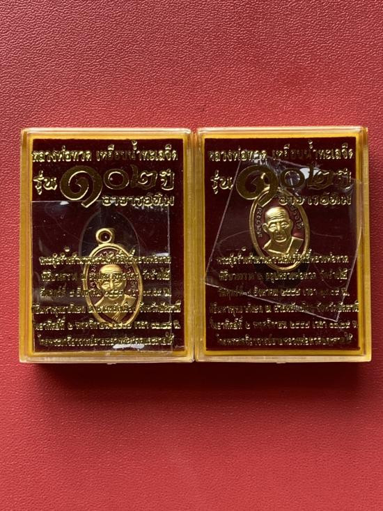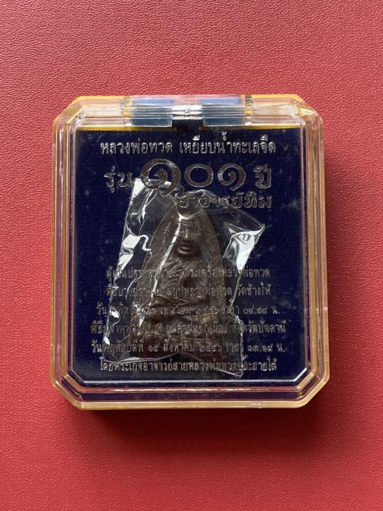 เคาะเดียวแดง.....เหรียญเลื่อนสมณศักดิ์ หลวงปู่ทวดปี 58 เนื้อชนวนไม่ตัดปีกหลังกึ่งเรียบ (ชุดเนื้อเงินหน้ากากทองคำ) ตอกนัมเบอร์ 2501 พร้อมกล่องเดิม สภาพสวย |