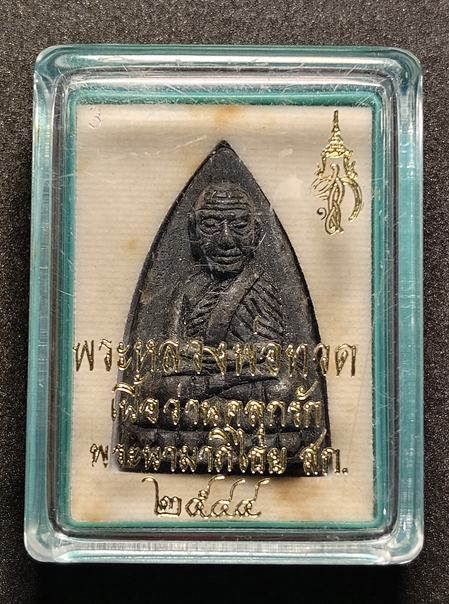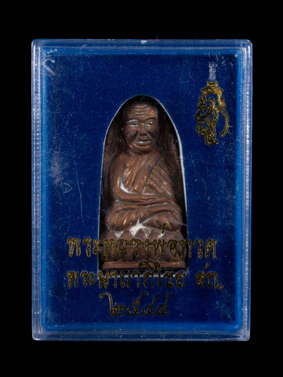 หลวงปู่ทวดวัดห้วยมงคล เนื้อว่านคลุกรัก หลัง สก.ปี 2544 พร้อมกล่องเดิม |