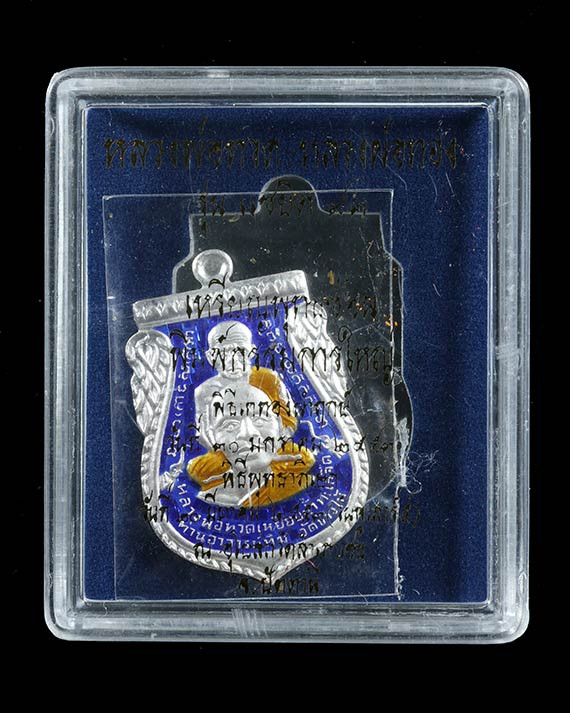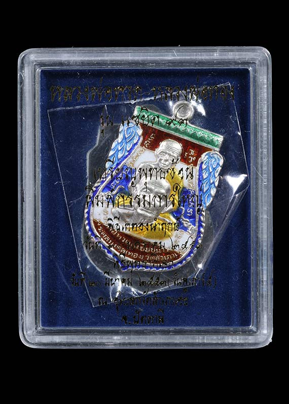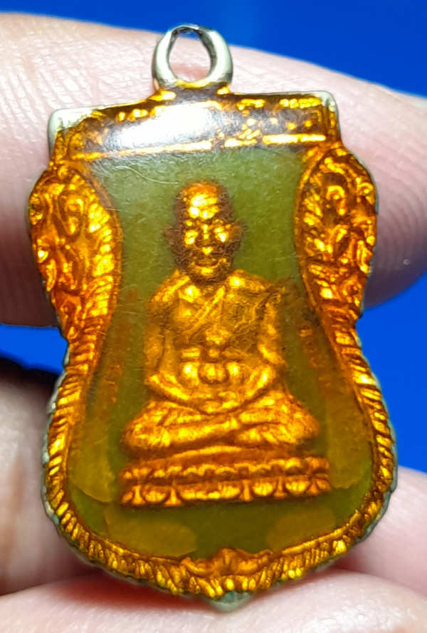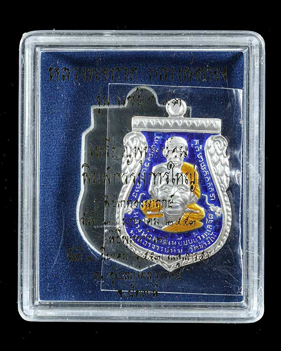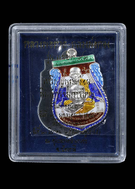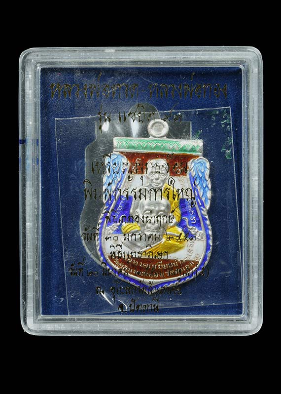 วัดใจ หลวงปู่ทวด หลวงปู่ศิลา เมตตาอธิษฐานจิต รุ่นเลื่อนสมณศักดิ์ เหนือดวง เนื้อทองทิพย์ ลงยา No.95 |