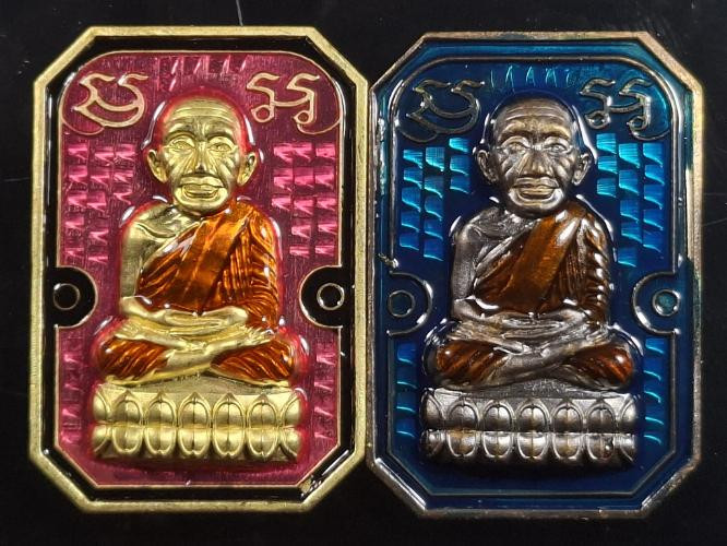 วัดใจ หลวงปู่ทวด หลวงปู่ศิลา เมตตาอธิษฐานจิต รุ่นเลื่อนสมณศักดิ์ เหนือดวง เนื้อทองทิพย์ ลงยา No.93 |