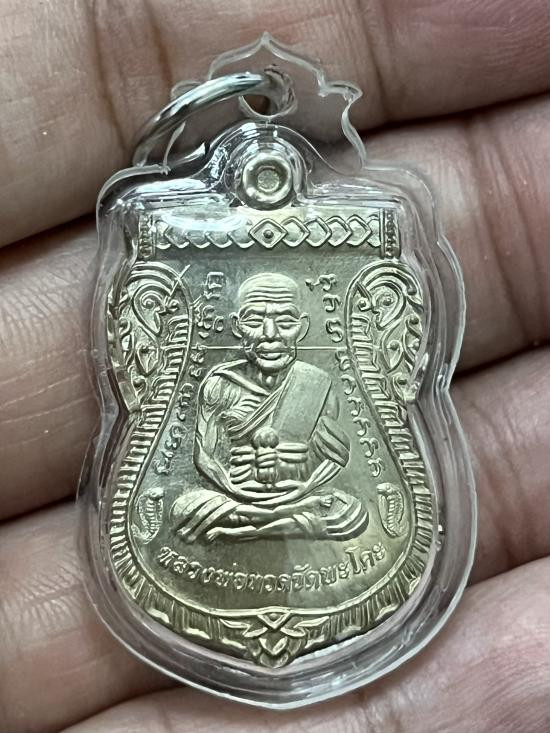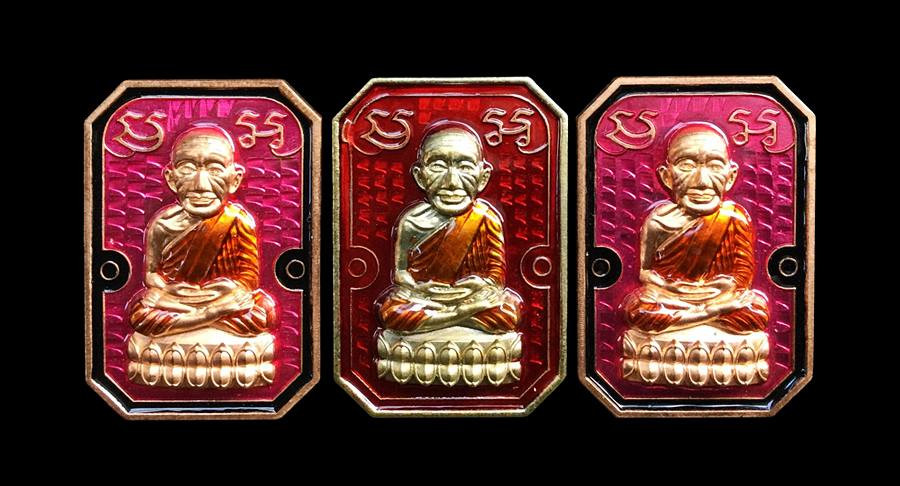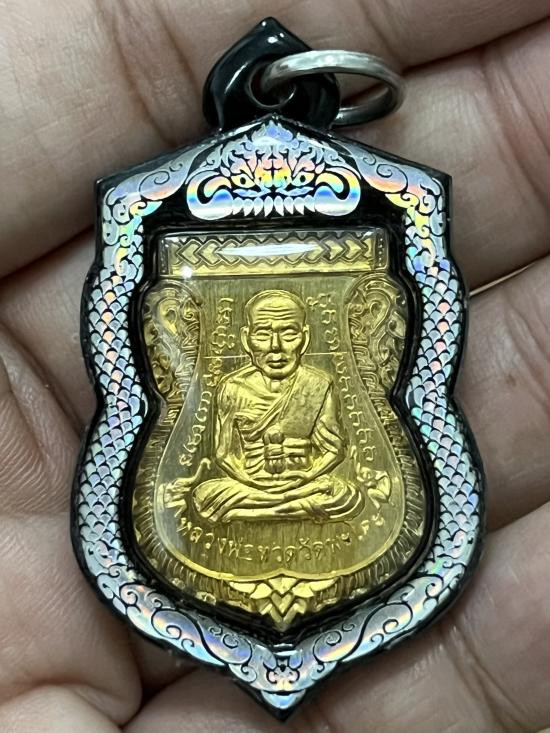 วัดใจ หลวงปู่ทวด หลวงปู่ศิลา เมตตาอธิษฐานจิต รุ่นเลื่อนสมณศักดิ์ เหนือดวง เนื้อทองทิพย์ ลงยา No.95 |