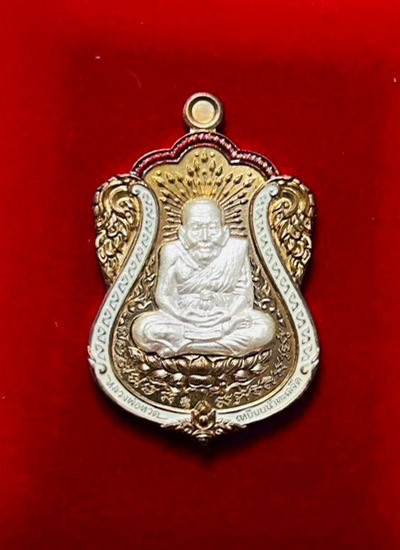 วัดใจ หลวงปู่ทวด หลวงปู่ศิลา เมตตาอธิษฐานจิต รุ่นเลื่อนสมณศักดิ์ เหนือดวง เนื้ออัลปาก้า ลงยา No.278 |