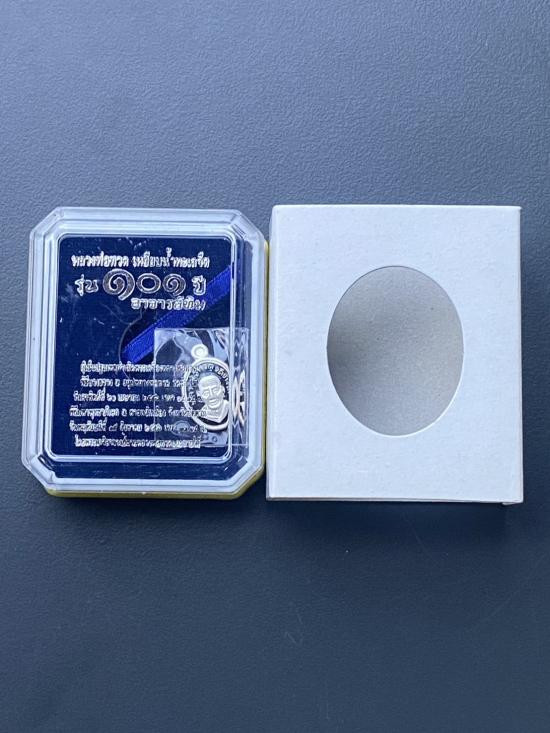 เม็ดแตงหลวงปู่ทวด อาจารย์หลังทิม รุ่น101ปีเนื้อเงินลงยาดำ |