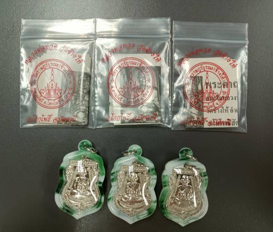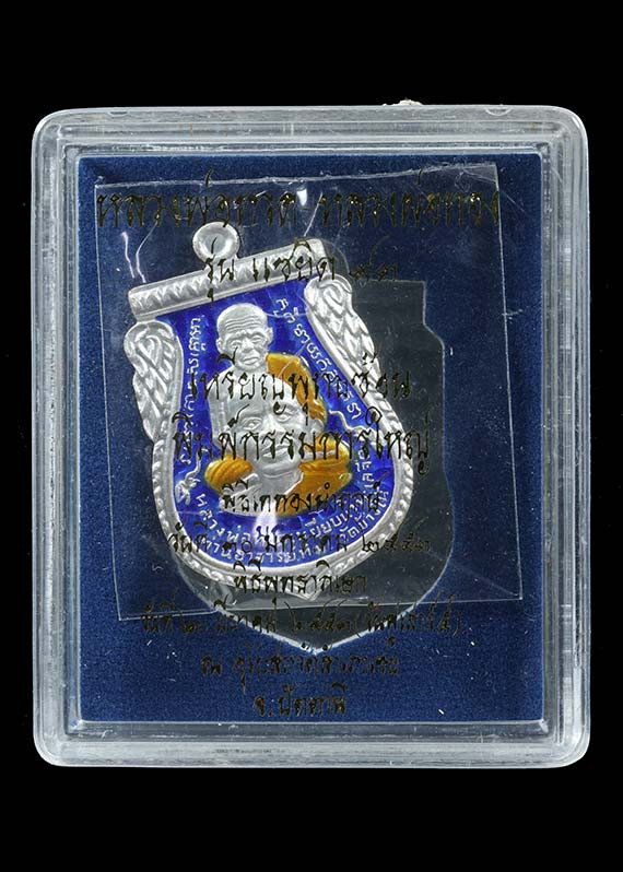 วัดใจ หลวงปู่ทวด หลวงปู่ศิลา เมตตาอธิษฐานจิต รุ่นเลื่อนสมณศักดิ์ เหนือดวง เนื้ออัลปาก้า ลงยา No.444 |