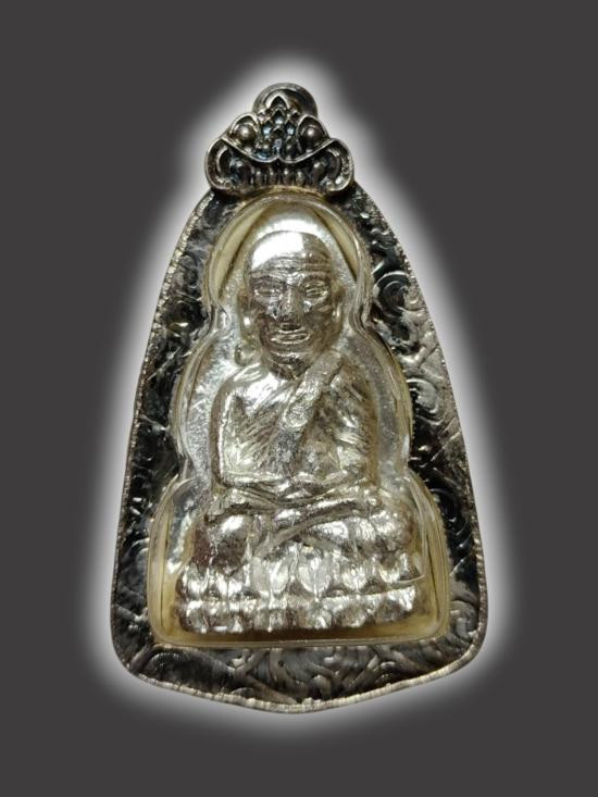 วัดใจ หลวงปู่ทวด หลวงปู่ศิลา เมตตาอธิษฐานจิต รุ่นเลื่อนสมณศักดิ์ เหนือดวง เนื้ออัลปาก้า ลงยา No.88 |