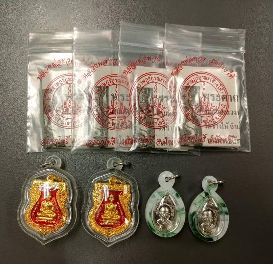 วัดใจ หลวงปู่ทวด หลวงปู่ศิลา เมตตาอธิษฐานจิต รุ่นเลื่อนสมณศักดิ์ เหนือดวง เนื้อทองทิพย์ ลงยา No.2 |