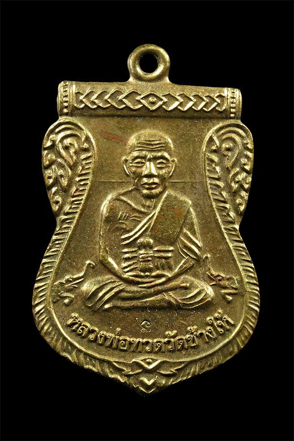 เคาะเดียวแดง หลวงปู่ทวด พิมพ์หน้าเลื่อน รุ่น เจริญพรสรงน้ำ เลข11 เนื้อ บรอนชุบเงินโบราณ |