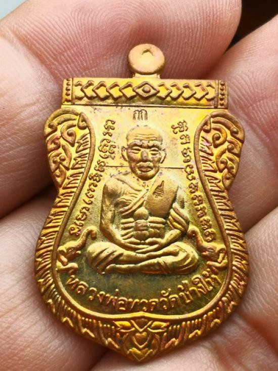 เคาะเดียวแดง หลวงปู่ทวด พิมพ์หน้าเลื่อน รุ่น เจริญพรสรงน้ำ เลข2 เนื้อ บรอนชุบทอง |