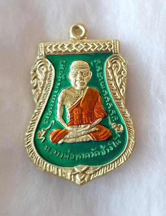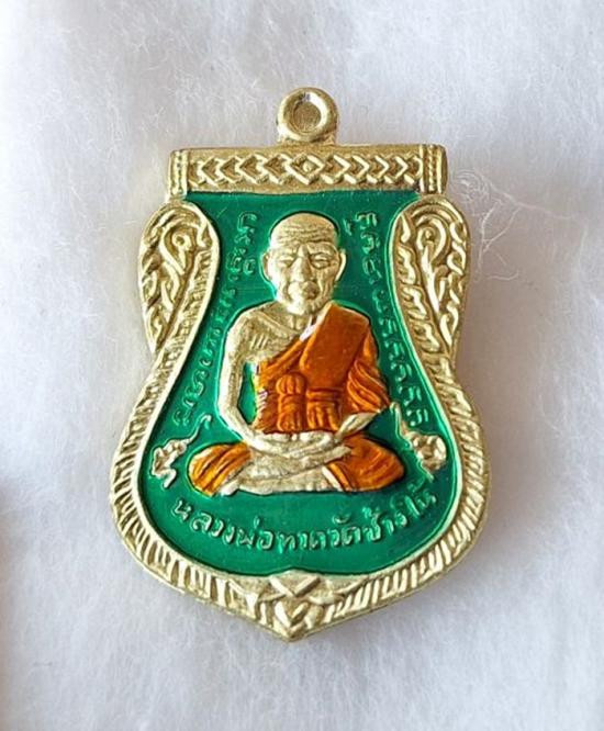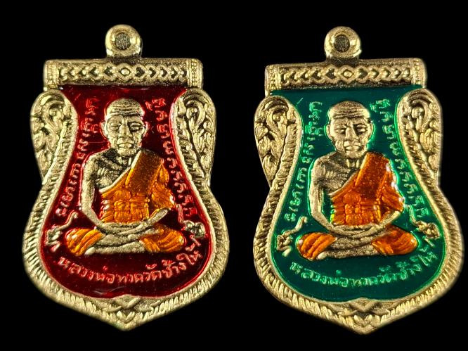 วัดใจ หลวงปู่ทวด หลวงปู่ศิลา เมตตาอธิษฐานจิต รุ่นเลื่อนสมณศักดิ์ เหนือดวง เนื้อทองทิพย์ ลงยา No.32 |