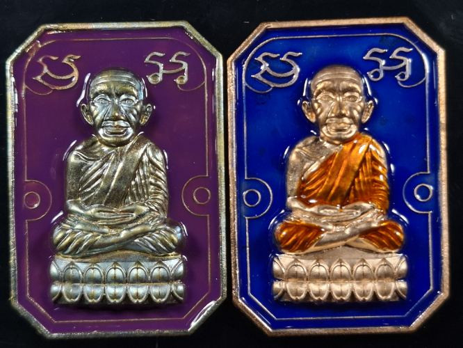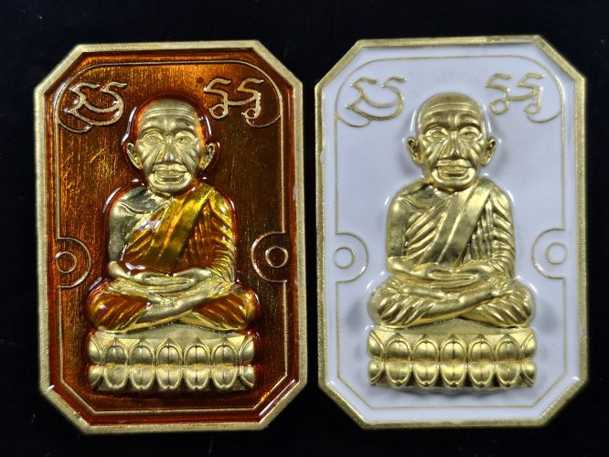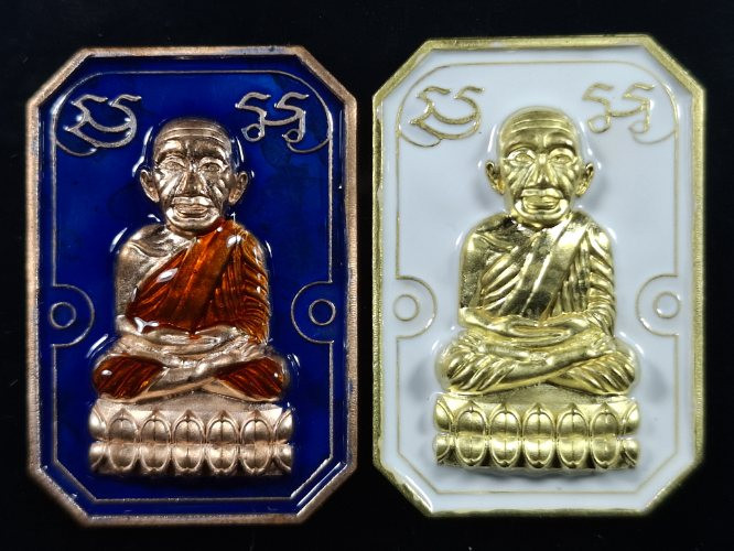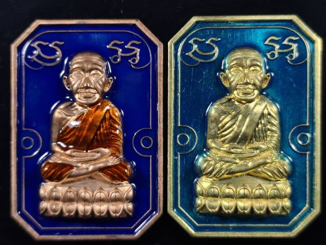วัดใจ หลวงปู่ทวด หลวงปู่ศิลา เมตตาอธิษฐานจิต รุ่นเลื่อนสมณศักดิ์ เหนือดวง เนื้อทองทิพย์ ลงยา No.90 |