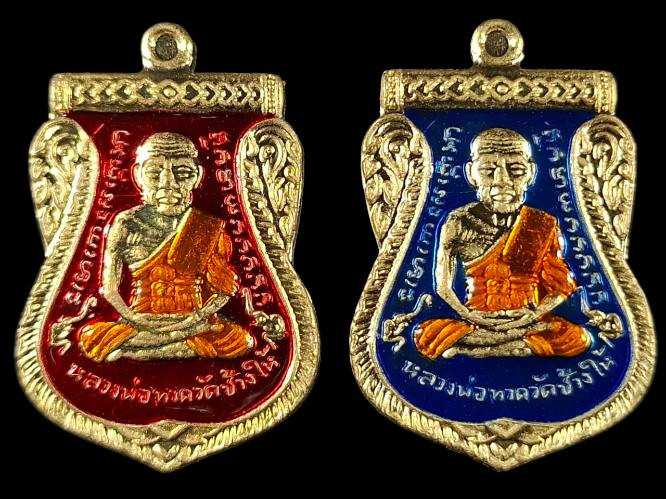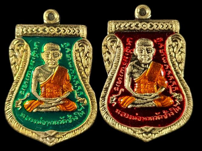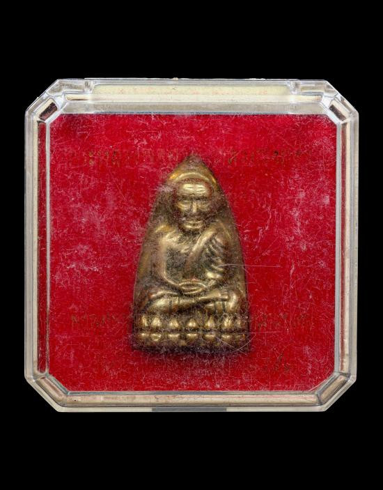 วัดใจ หลวงปู่ทวด หลวงปู่ศิลา เมตตาอธิษฐานจิต รุ่นเลื่อนสมณศักดิ์ เหนือดวง เนื้อทองทิพย์ ลงยา No.124 |