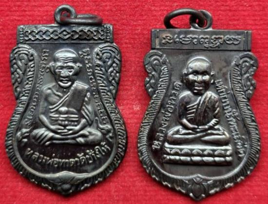 วัดใจ หลวงปู่ทวด หลวงปู่ศิลา เมตตาอธิษฐานจิต เหรียญเสมาหัวโต เนื้ออัลปาก้าลงยา No.177
