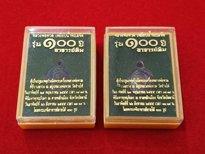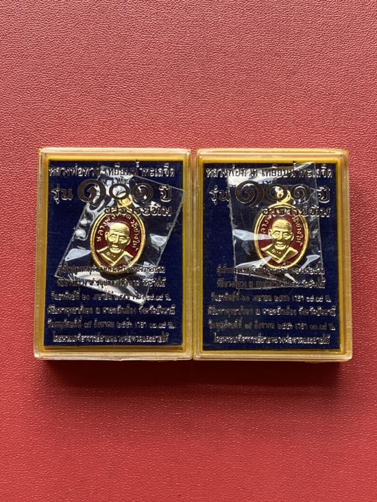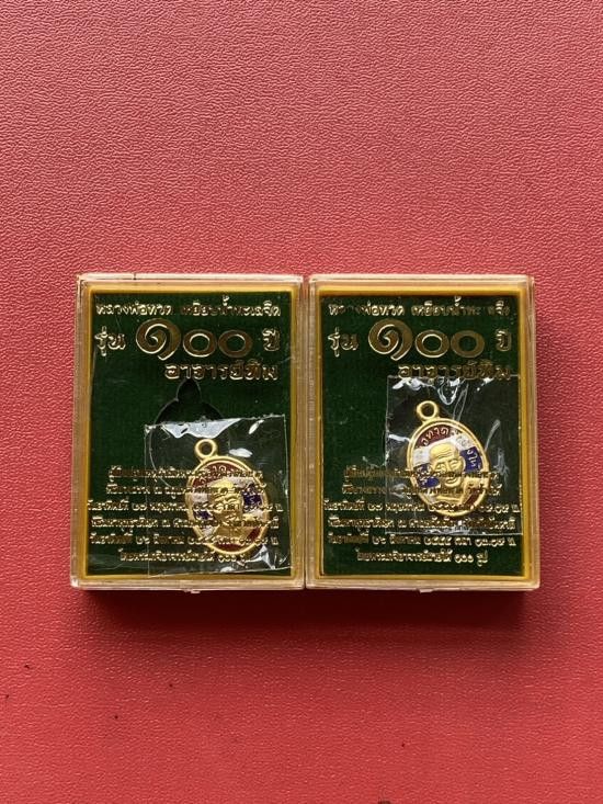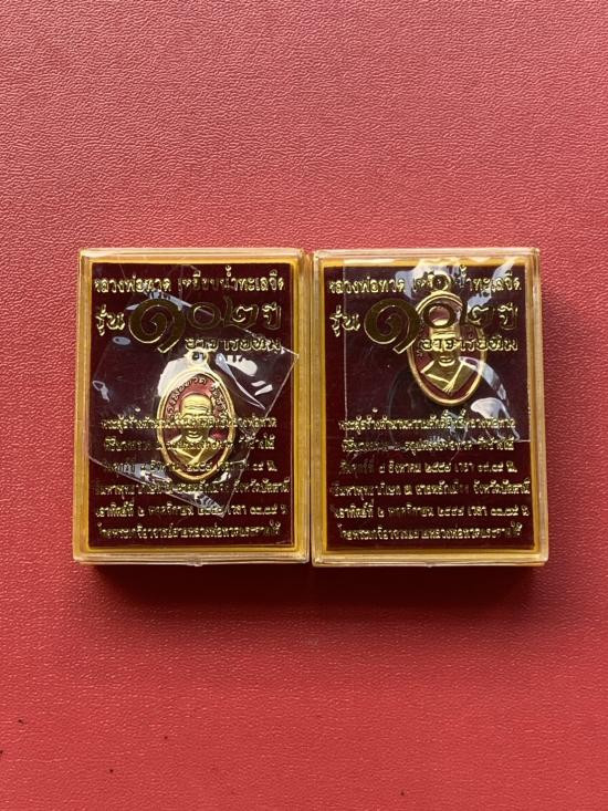 เคาะเดียวแดง เม็ดแตง 2องค์หลวงปู่ทวด รุ่น100ปี เนื้อ ชุบทองลงยาธงชาติ