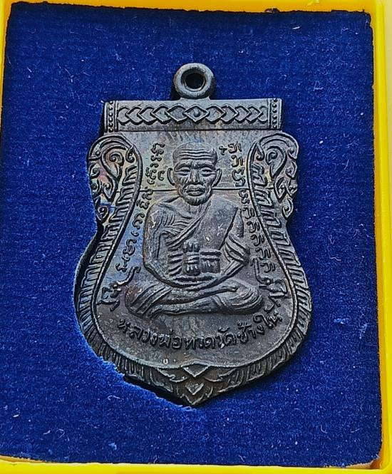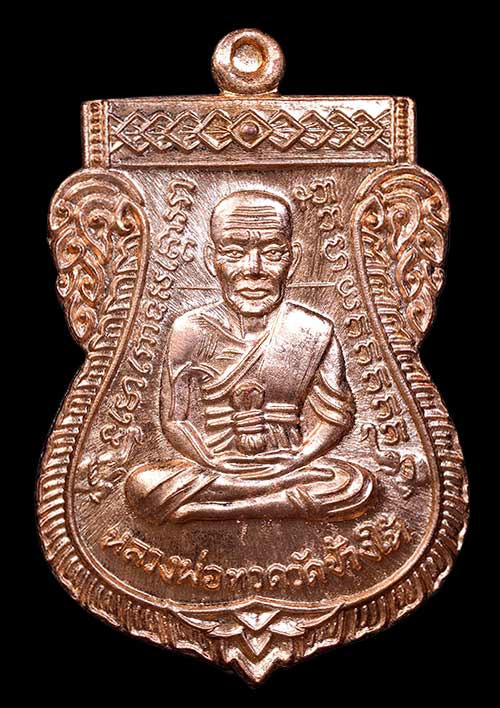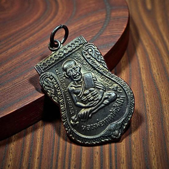เคาะเดียวแดง หลวงปู่ทวด พิมพ์หน้าเลื่อน รุ่น เจริญพรสรงน้ำ เลข18 เนื้อ บรอนชุบเงินโบราณ