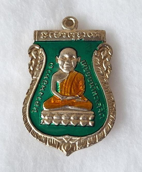วัดใจ หลวงปู่ทวด หลวงปู่ศิลา เมตตาอธิษฐานจิต เหรียญเสมาหัวโต เนื้ออัลปาก้าลงยา No.190 |