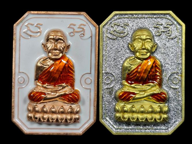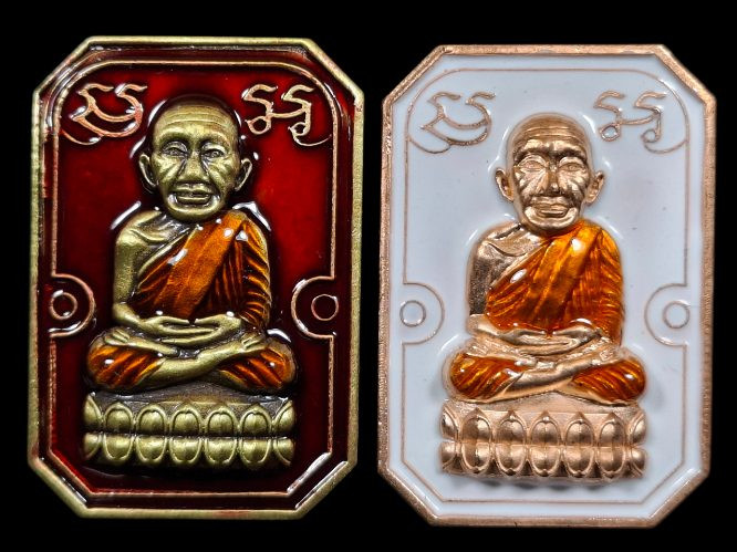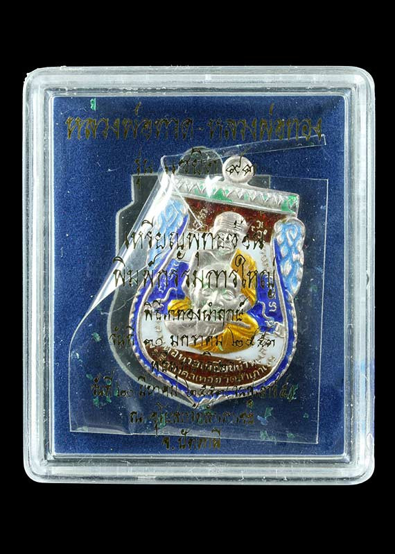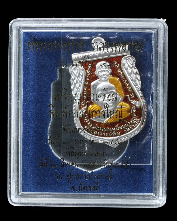 วัดใจ หลวงปู่ทวด หลวงปู่ศิลา เมตตาอธิษฐานจิต รุ่นเลื่อนสมณศักดิ์ เหนือดวง เนื้อทองทิพย์ ลงยา No.1 |