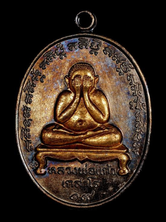 วัดใจครับ เหรียญปิดตาหลวงปู่แก้ว เกสาโร เนื้อทองแดงกะไหล่เงินหน้าทองจำนวนการจัดสร้าง 200 เหรียญ แจกกรรมการ ผิวออกนำ้ทองมีรุ้งๆ เลยครับ สภาพสวยมากครับ |