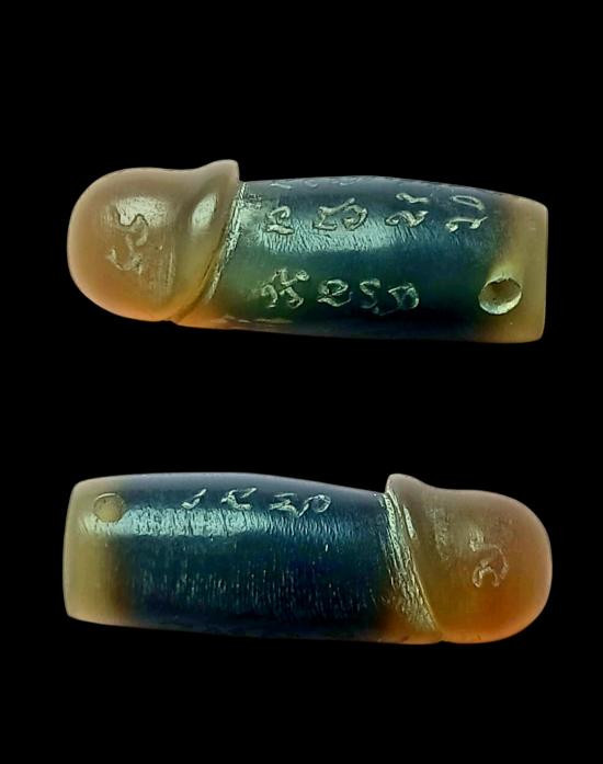 ปลัดขิกแกะเขาควายเผือก ( ทูโทน ) จิ๋ว ( ขนาวยาวประมาณ 2.4 เซนติเมตร ) หลวงพ่อสิน วัดละหารใหญ่ |