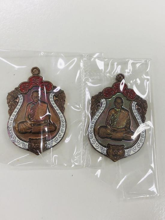 เหรียญเสมาหัวเสือ พิมพ์เล็ก เนื้อทองแดงลงยา หลวงพ่อสิน วัดละหารใหญ่ 2 เหรียญ ปี 2560 เลข 911+977 พร้อมกล่อง |