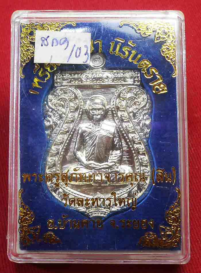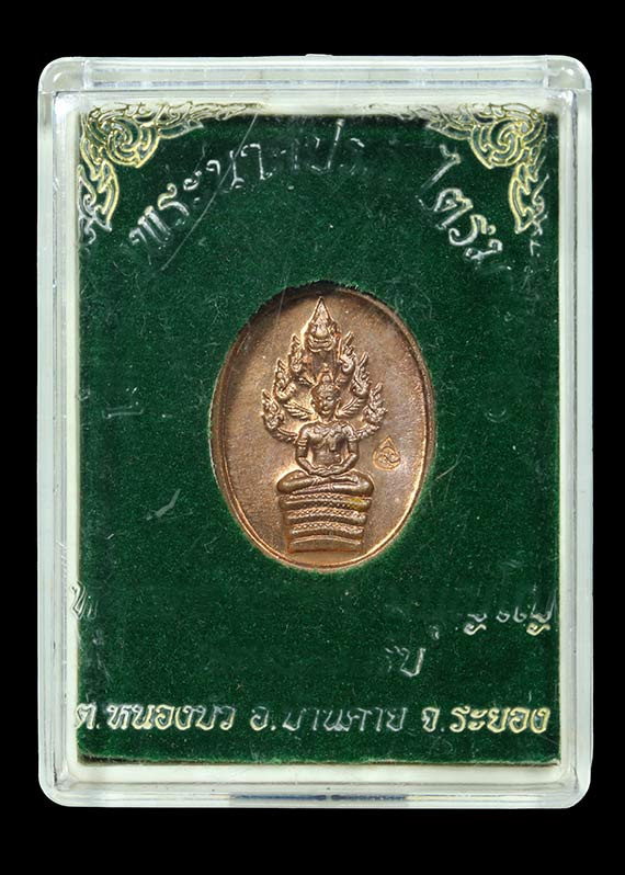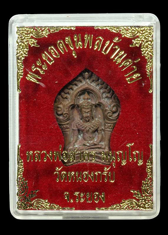 พระขุนแผนหลวงพ่อสาคร วัดหนองกรับ รุ่นไตรมาส 51 พิมพ์ใหญ่ หลังฝังพลอย หมายเลข 1053 มีกล่อง แดงเคาะแรก |