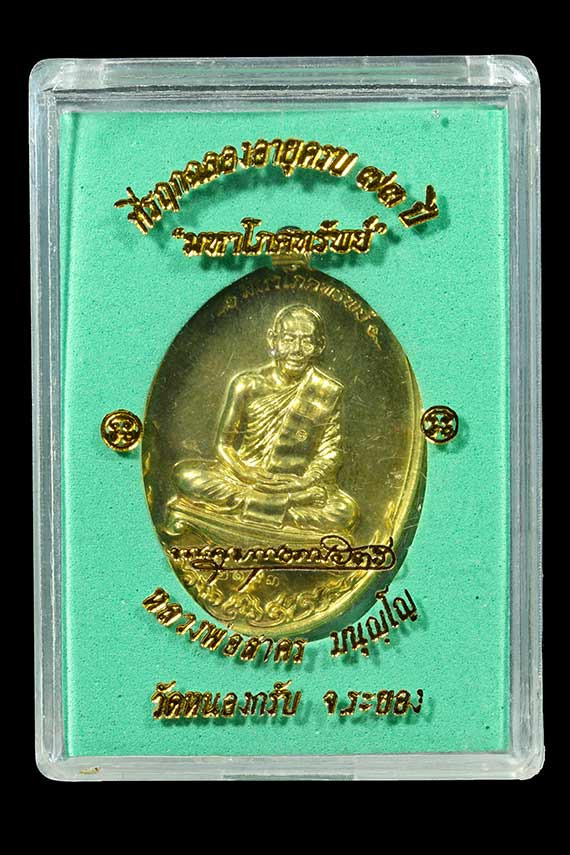 เหรียญ มหาโภคทรัพย์ หลวงพ่อสาคร วัดหนองกรับ เนื้อทองฝาบาตร หมายเลข 1062 ซีลเดิมจากวัด พร้อมกล่องเดิม |