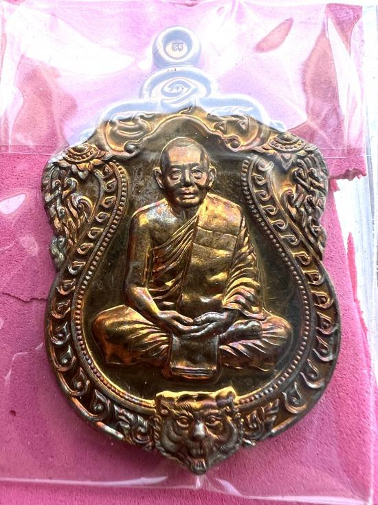 เหรียญเจริญพรไตรมาสเนื้อทองแดง แบบแดงแดง บล๊อคทองคำ 'หลวงพ่อสาคร วัดหนองกรับ หมายเลข 4290 สวยๆ ซีลเดิมจากวัด |