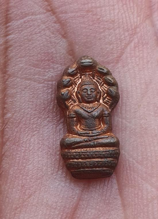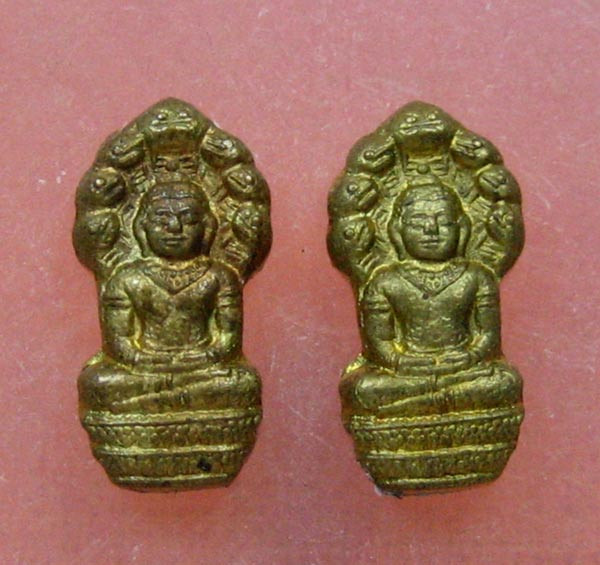 เคาะเดียว! พระนาคปรกใบมะขาม เนื้อทองฝาบาตร ๒ องค์ หลวงพ่อสาคร พร้อมรูปหลวงพ่อสาคร หลังปั๊มยันต์ห้า ๒ ใบ |