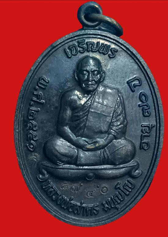 เหรียญเจริญพร ไตรมาส 55 หลวงพ่อสาคร วัดหนองกรับ จ.ระยอง เนื้อทองแดงลงยา |