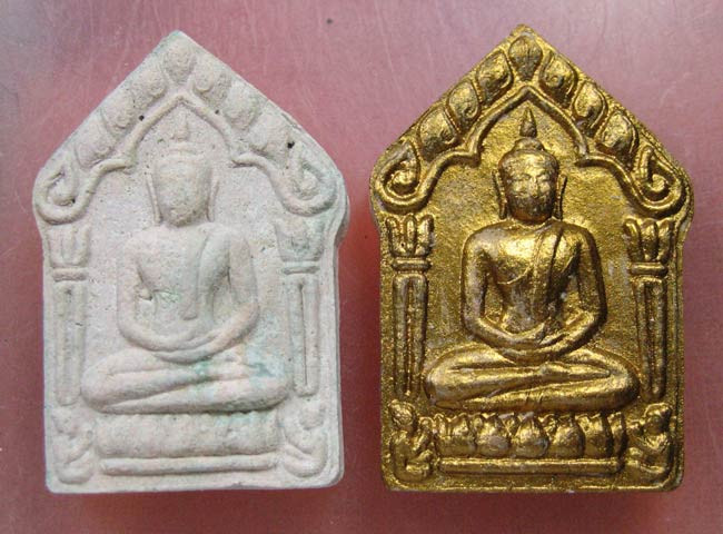 พระยอดขุนพลบ้านค่าย เนื้อสำริด no.10148 พระขุนแผนผงพรายกุมาร พิมพ์ใหญ่ รุ่น "พรายทอง" ปี 2554 หลังฝังพลอย no. 9267 ลพ.สาคร วัดหนองกรับ จ.ระยอง |