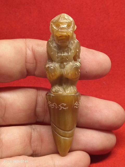 (คัดสวย พร้อมเลี่ยม เคาะเดียว) สาริกาลิ้นทอง หลวงพ่อสิน แกะสลักเนื้อเขาควายเผือก สีน้ำผึ้งนิยม |