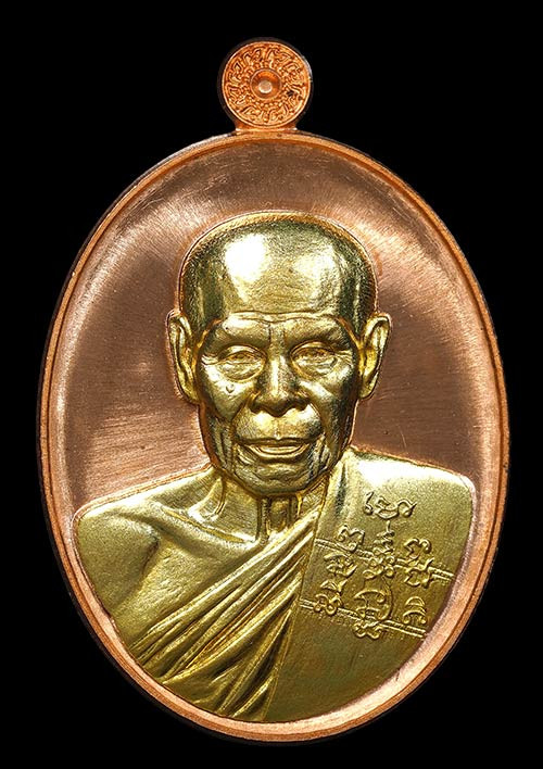 เหรียญเจริญพรบนเนื้อทองเเดงพร้อมกล่อง |