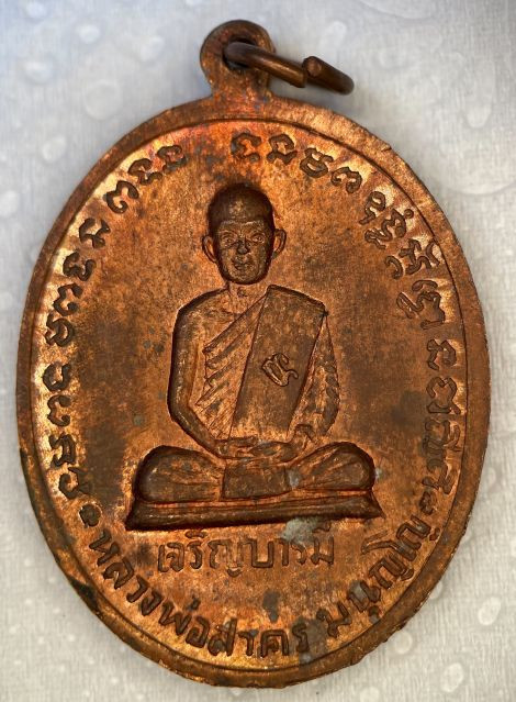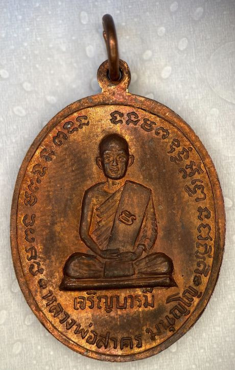 เหรียญเจริญบารมี หลวงพ่อสาคร วัดหนองกรับ ปี 2535 เนื้อทองแดงผิวไฟสวยๆ องค์ที่ 4 เคาะเดียว |