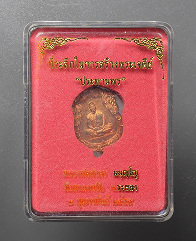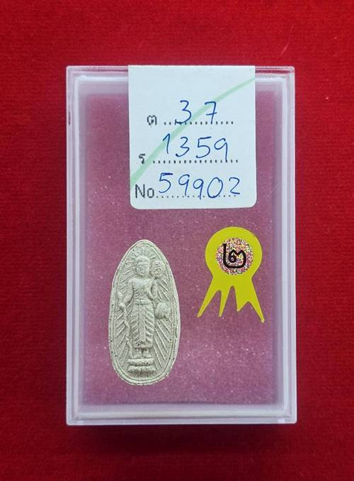 พระขุนแผนหลวงพ่อสาคร วัดหนองกรับ รุ่นไตรมาส 51 พิมพ์ใหญ่ หลังฝังพลอย หมายเลข 1053 มีกล่อง แดงเคาะแรก |