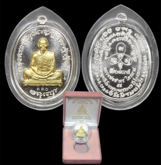 แยกชุดกรรม เลข๙๘ ผู้ชนะรับพระ 2 องค์ เหรียญโภคทรัพย์ ลพ สาคร ปี 2552 เนื้อกะไหล่ทอง ลงยาแดง+กะไหล่นาค ลงยาน้ำเงิน หายากมากเพราะสร้างไว้ในเฉพาะในชุดกรรมการที่มีเพียง 300 เท่านั้น เลข 98 มีเพียง 1 เดียว |