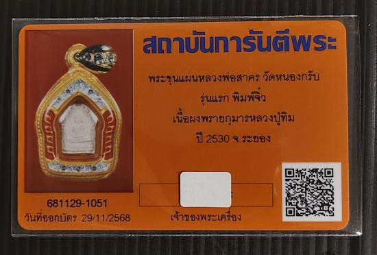 ขุนแผนหลวงพ่อสาคร วัดหนองกรับ รุ่นไตรมาส51 พิมพ์เล็ก เนื้อผงพรายกุมารหลวงปู่ทิม ปี2551 |