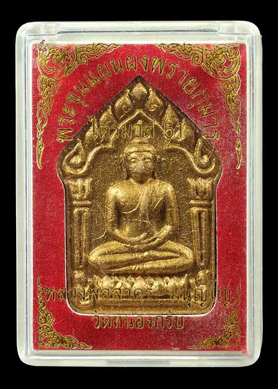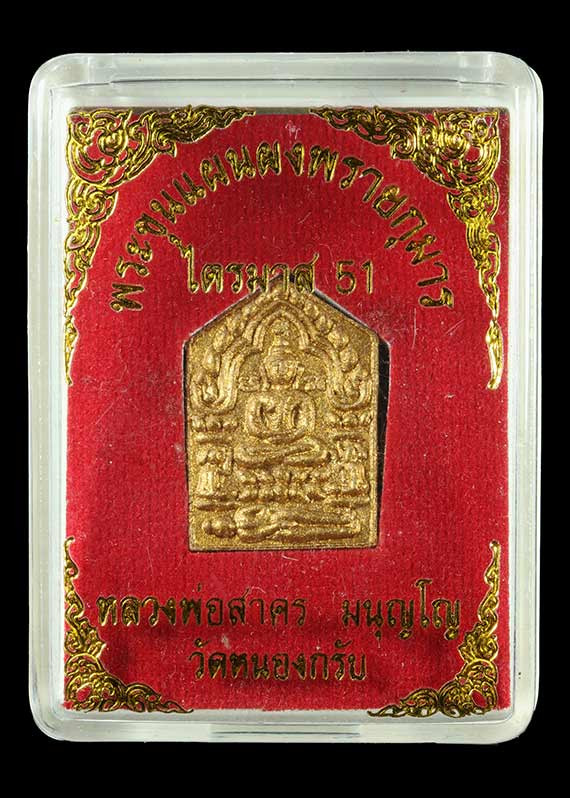 พระขุนแผนหลวงพ่อสาคร วัดหนองกรับ รุ่นไตรมาส 51 พิมพ์ใหญ่ หลังฝังพลอย หมายเลข 1053 มีกล่อง แดงเคาะแรก |