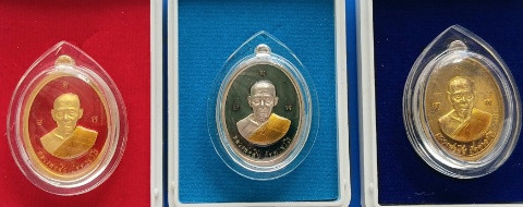 หรียญรูปไข่ครึ่งองค์ (เหรียญโบว์) ที่ระลึกในงานผูกพัทธสีมา หลวงพ่อสิน วัดละหารใหญ่รายการที่5 เนื้อเงินลงยาสามกษัตริย์ สร้าง 1188 องค์ เลข 132 เรียงสลับ จองวัด1800 บาท |