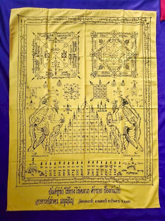 ผ้ายันต์เหลืองท้าวเวสสุวรรณธนบดี หลวงพ่อสาคร มนุญโญ วัดหนองกรับ ขนาดประมาณ 12 x 18 นิ้ว |