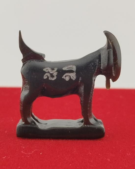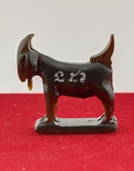 (ตัวใหญ่ คัดสวย เคาะเดียว) แพะ หลวงพ่อสิน แกะสลักเนื้อเขาควายเผือก สีโค้ก |