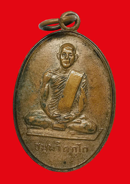 เหรียญท่านเจ้าคุณนรฯ วัดเทพศิรินทรฯ พิมพ์สังฆาฏิเล็ก หูขีด เนื้อทองแดง ห่วงเดิม ปี2513 จ.กรุงเทพฯ + บัตรG-pra |